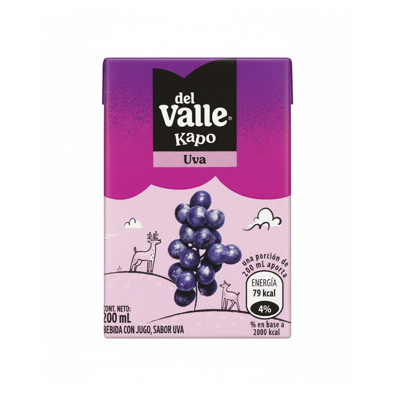 Disfruta del delicioso sabor de la uva con la Bebida Del Valle Kapo. Perfecta para niños y toda la familia, esta bebida aporta frescura y un toque dulce natural en cada sorbo. Su presentación de 200 ml es práctica para llevar y disfrutar en cualquier momento del día.