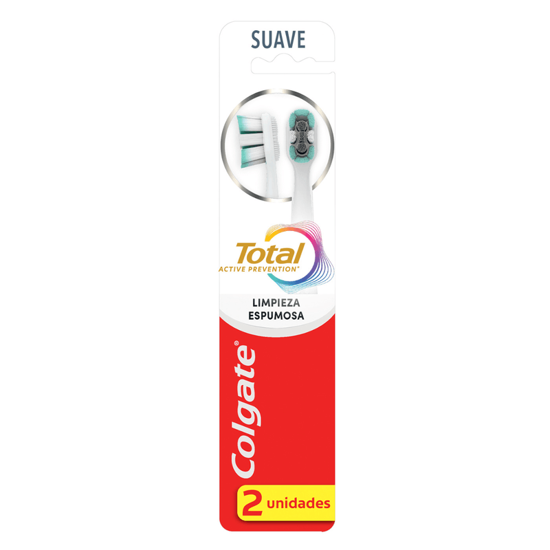 El Cepillo Dental Colgate Total Clean Mint Prevención Activa 2 pk está diseñado para ofrecer una limpieza completa y eficaz en cada cepillado. Con cerdas suaves y de alta calidad, su innovador diseño genera espuma para una limpieza profunda, ayudando a eliminar restos de comida y placa dental de manera efectiva. Además, su cabezal compacto llega a las zonas más difíciles, asegurando una higiene bucal completa. El pack incluye dos cepillos, ideales para mantener tu salud dental y disfrutar de una frescura duradera. Perfecto para el uso diario, ¡logra una limpieza de 360 grados con Colgate!
