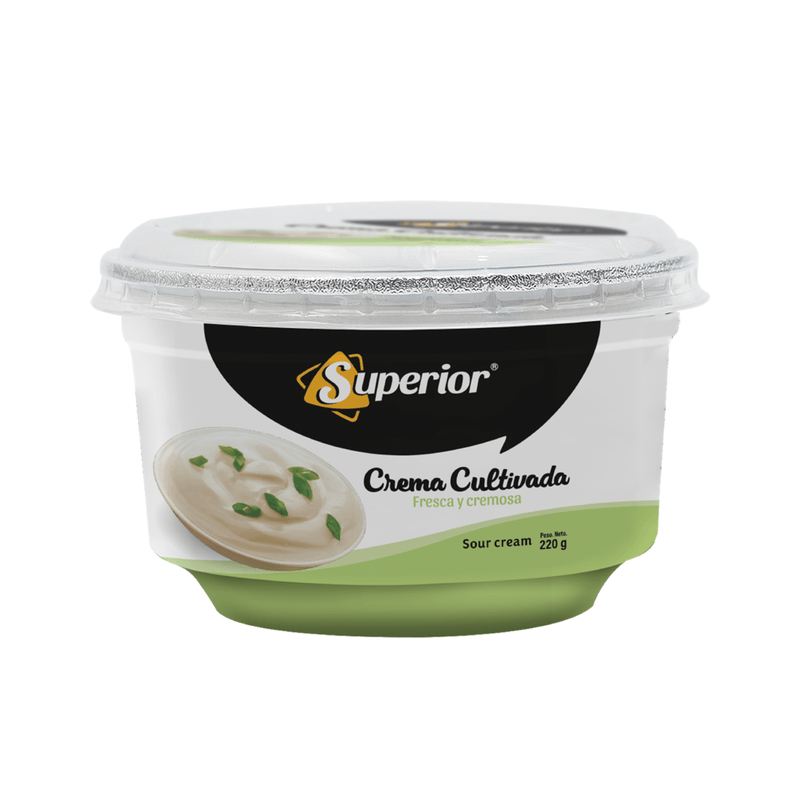 La Crema Cultivada Superior Sour Cream 220 GR es una deliciosa crema con un sabor ligeramente ácido y una textura suave, ideal para realzar el sabor de tus platillos. Perfecta para acompañar tacos, nachos, papas fritas, ensaladas o como base para salsas y aderezos, esta crema agrega un toque cremoso y sabroso a cualquier preparación. En su presentación de 220 gramos, es perfecta para el uso diario en el hogar, ofreciendo una opción versátil y deliciosa para disfrutar en cualquier ocasión.